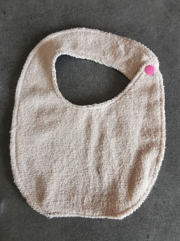 Un coté très tendance et un coté éponge absorbant. Les bavoirs sont maintenus par une pression.
