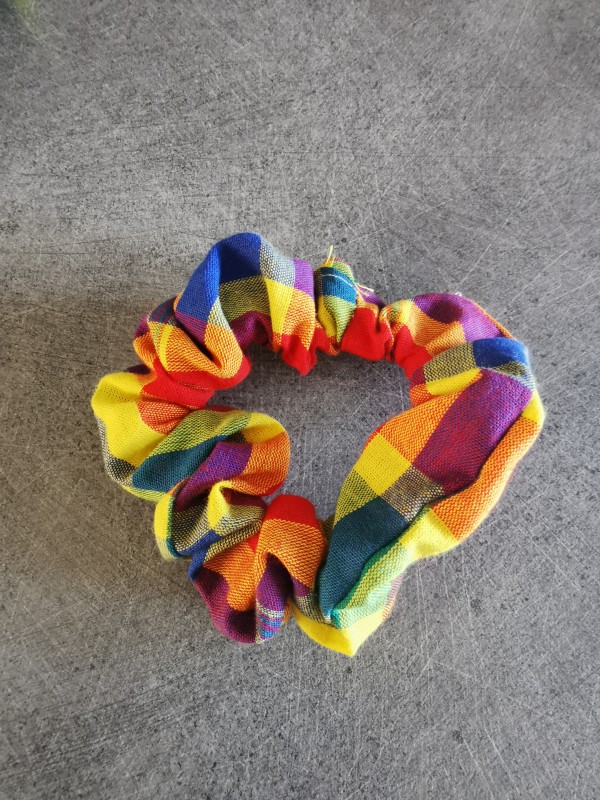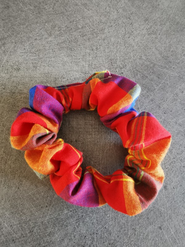 Chouchou Madras en wax pour cheveux entièrement fait à la main dans mon atelier en bretagne à Ploërmel dans le Morbihan.