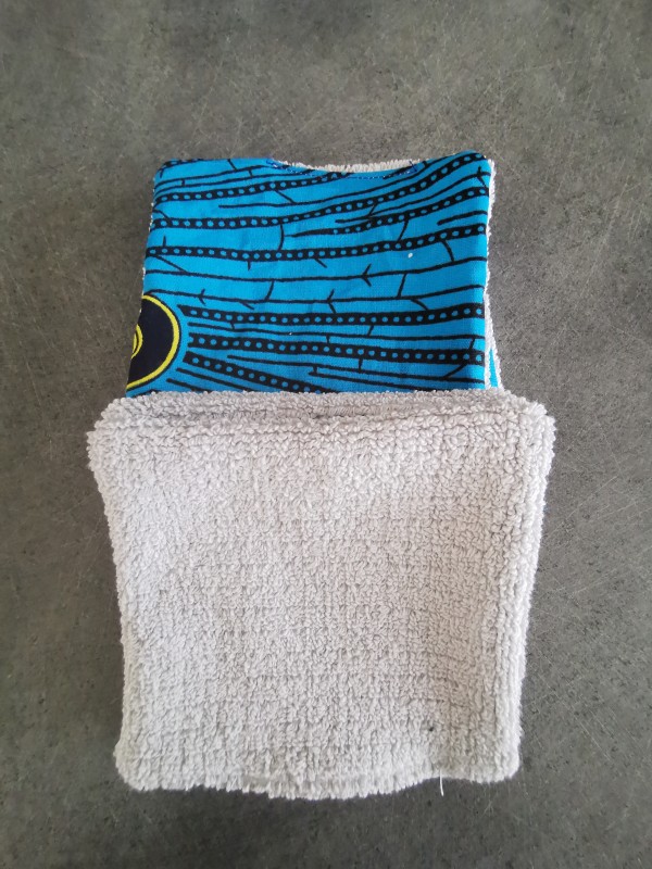 L’avantage de ces cotons démaquillant wax ou lingettes sont leur matière, ils sont en 100% coton wax et un coté éponge certifié oeko tex, le tissus wax ainsi que l’éponge très douce.