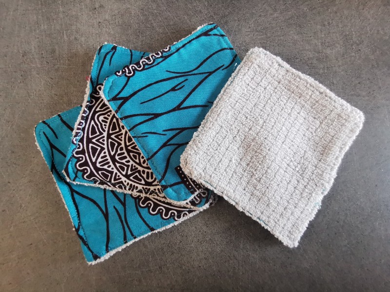 L’avantage de ces cotons lavable ou lingettes sont leur matière, ils sont en 100% coton wax et un coté éponge certifié oeko tex, le tissus wax ainsi que l’éponge très douce.
