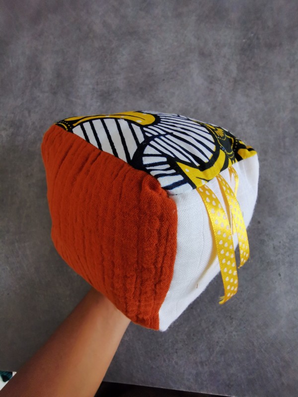 Un mélange de tissus double gaze, mais toujours avec une touche de tissus wax.