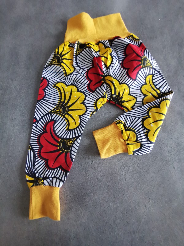 Le sarouel les chevilles et la ceinture sont en tissu bord de côte pour un maintien optimal tout en laissant bébé libre de ses mouvements.