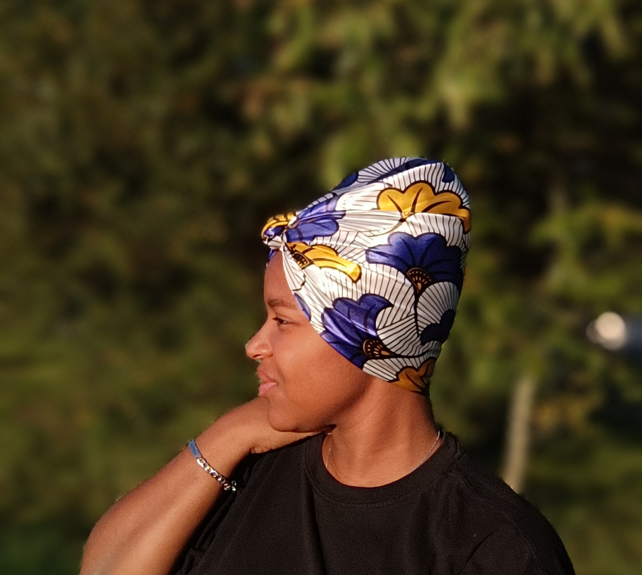 Ce turban satin bleu convient à toutes les textures de cheveux : crépus, bouclés, lisses ou locksés. Il est également idéal pour les femmes en transition capillaire, en période de repos capillaire ou en traitement médical.